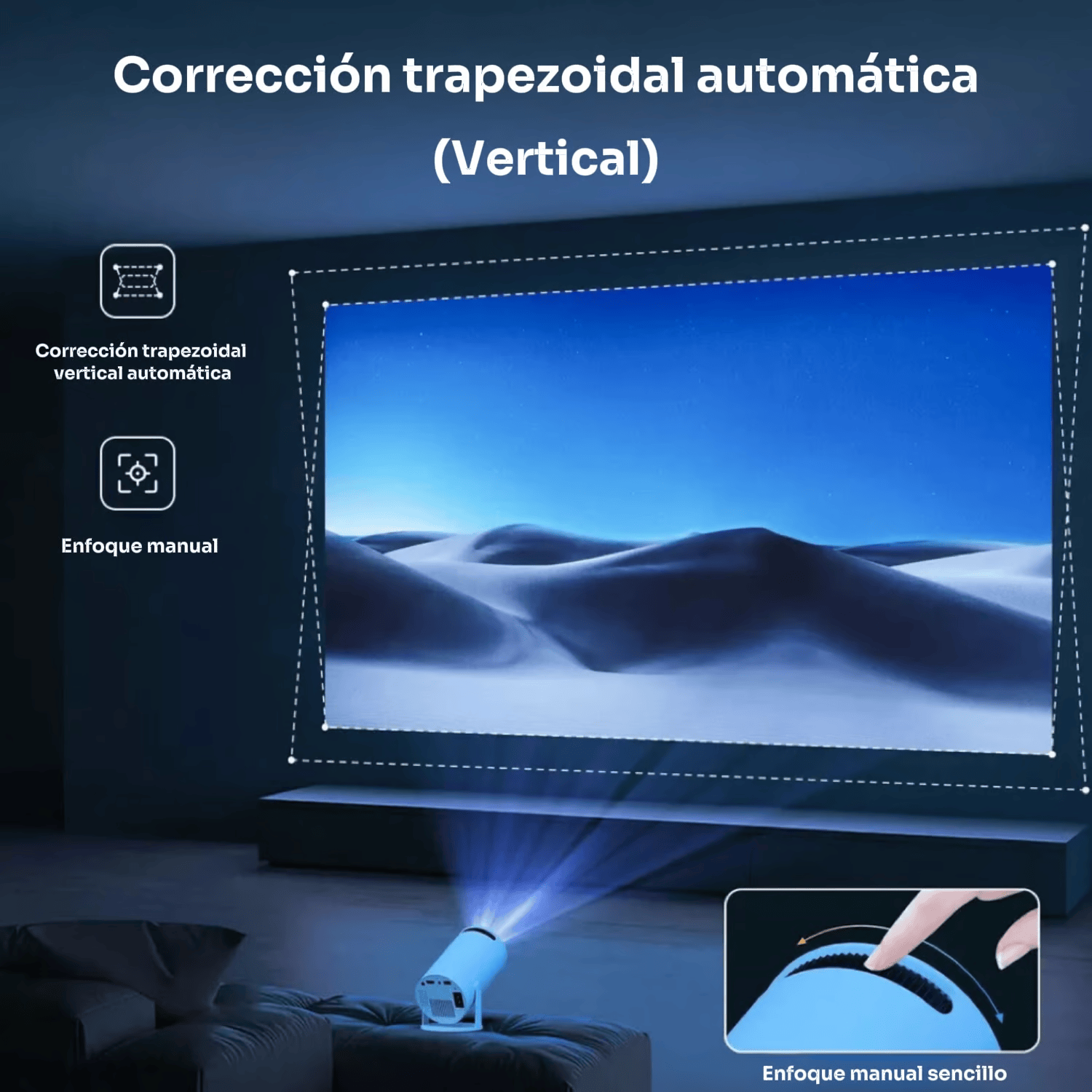 - Proyector giratorio de 180°: ¡Convierte cualquier superficie en un lienzo cinematográfico! Nuestro mini proyector portátil HY300 gira sin problemas para proyectarse en paredes, techos o incluso el suelo. Disfruta de una experiencia visual inmersiva desde cualquier ángulo dentro de tu hogar